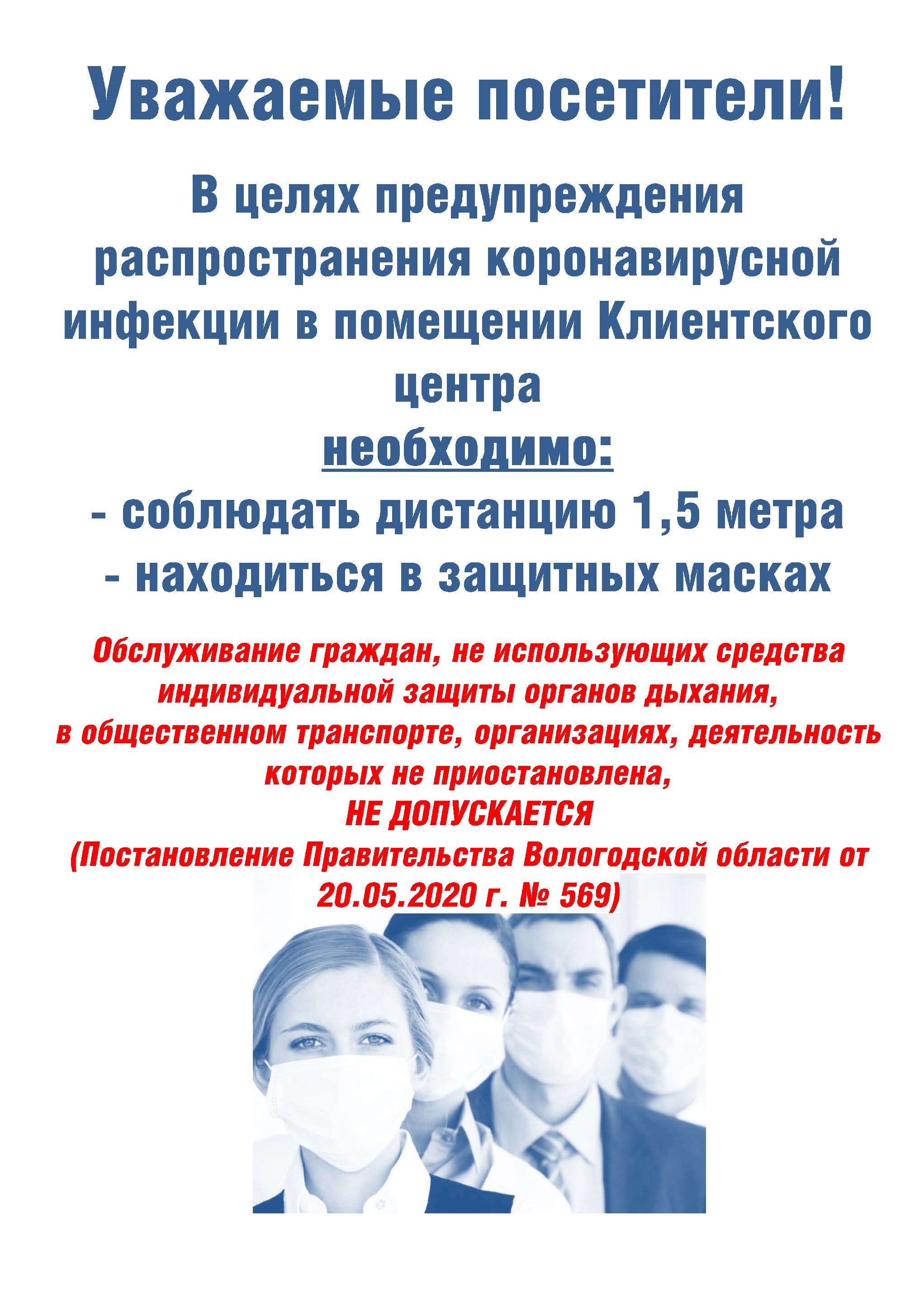 АО «Газпром газораспределение Вологда» напоминает гражданам о соблюдении масочного режима при посещении Клиентских центров